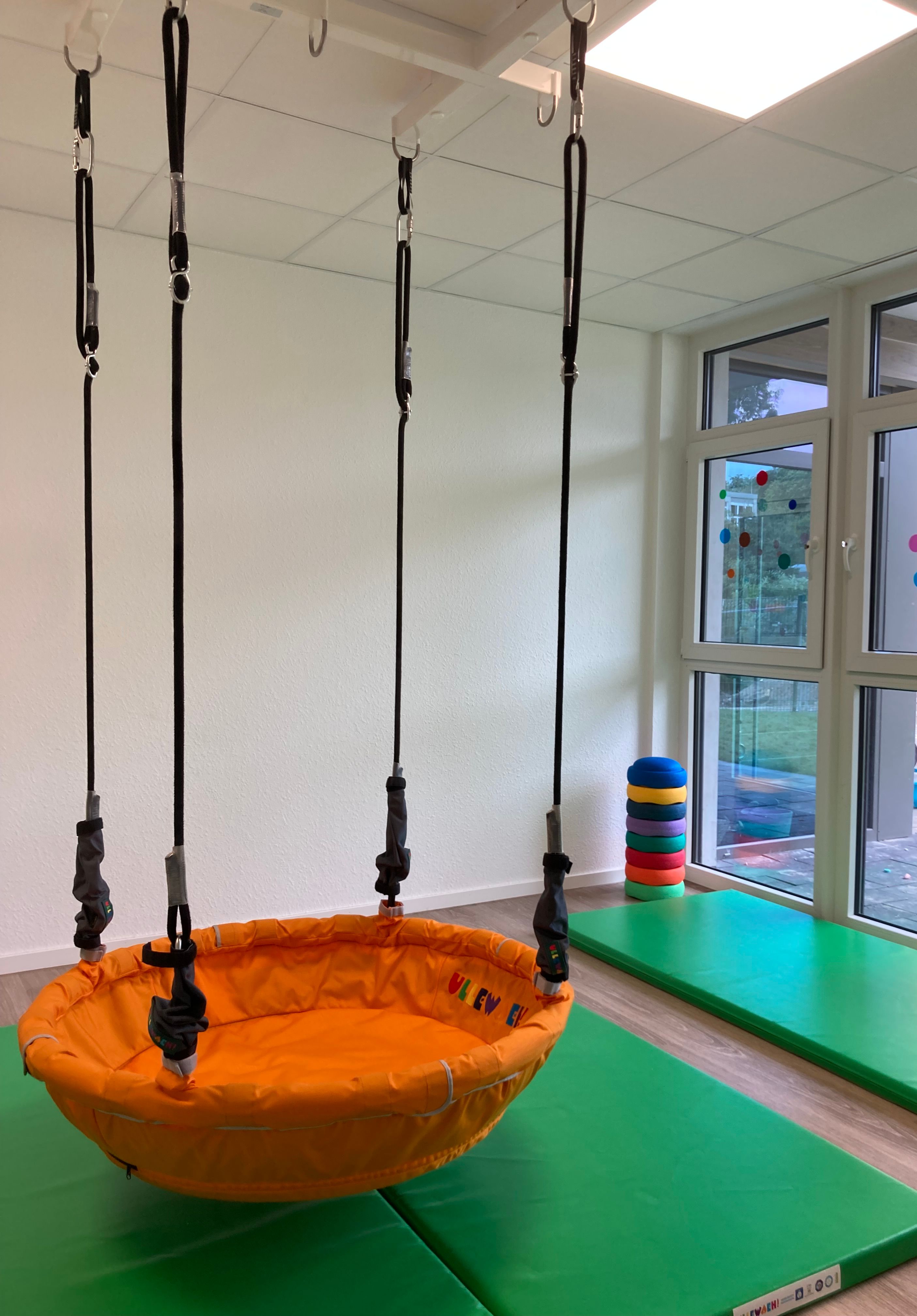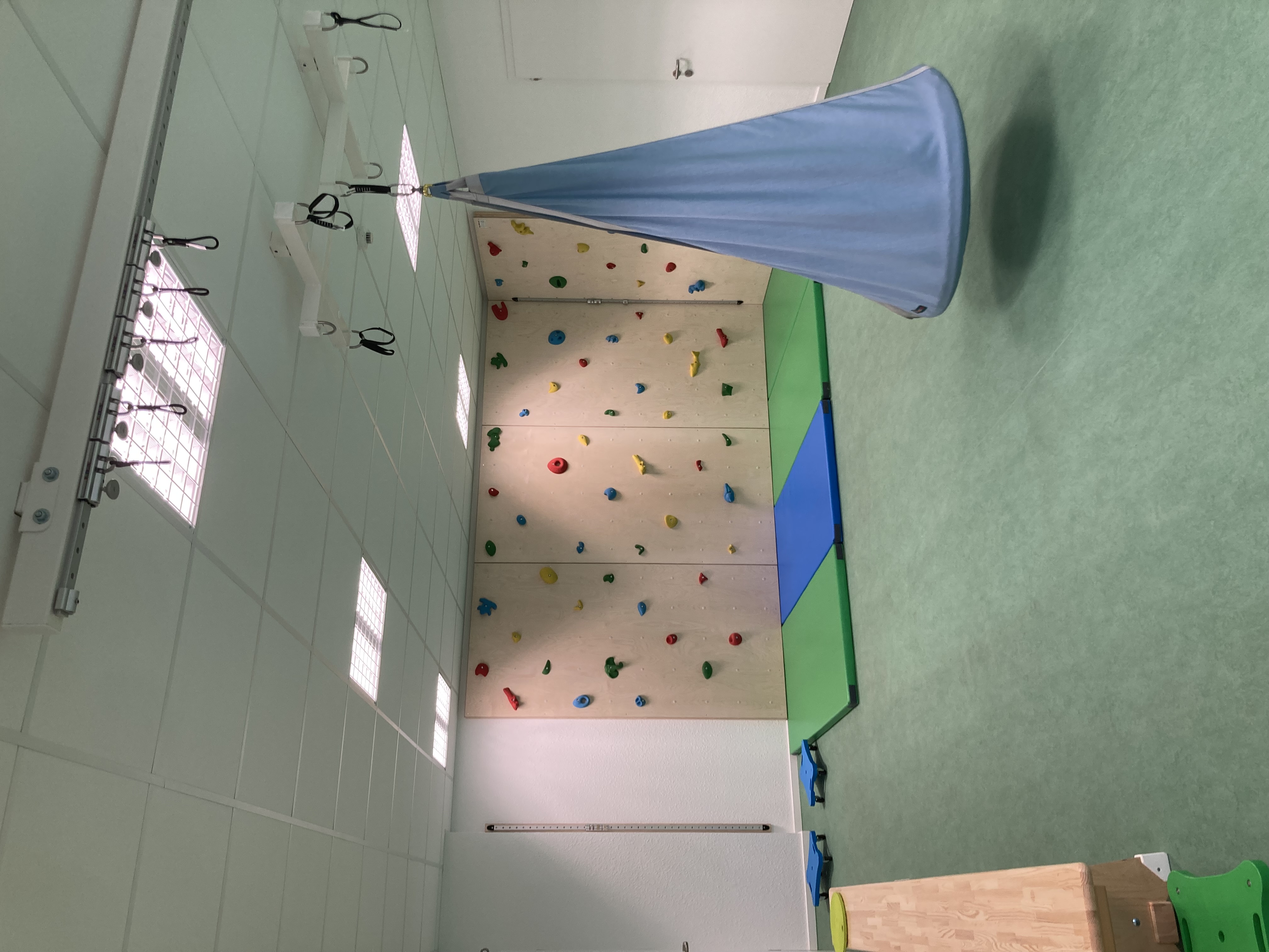 Unser Bewegungsangebot bietet den Kindern die Möglichkeit, grundlegende Bewegungs- und Materialerfahrungen auf großem Raum zu machen.