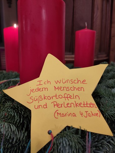 Gute Wünsche der Kinder wurden ausgesprochen und in den Reihen haben sich die Menschen gute Wünsche für die Adventszeit gesagt. Ein Beispiel zum Schmunzeln: