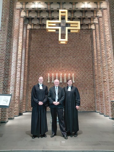 (Im Bild von links: Vikar Jonathan König, Generalsekretär Ricardo Schlegel, Pfarrer Michael Hoffmann in der Gnadenkirche Bottrop-Eigen)