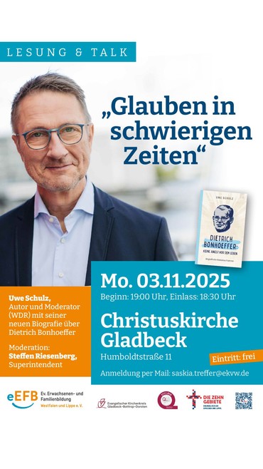Rasch anmelden: Lesung & Talk zu Dietrich Bonhoeffer in der Christuskirche Gladbeck
