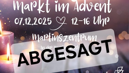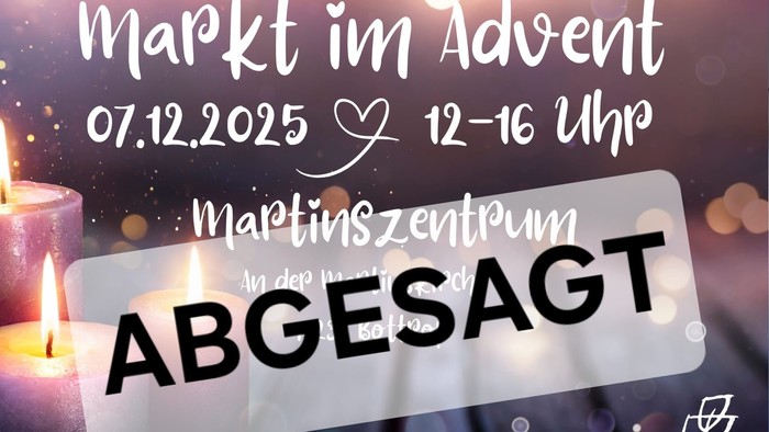 Die Evangelische Kirchengemeinde Bottrop informiert, dass der für Sonntag, den 7. Dezember 2025, geplante „Markt im Advent“ im Martinszentrum (An der Martinskirche 1, 46236 Bottrop) nicht stattfinden wird.