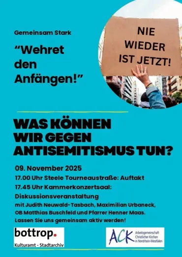 Die Stadt Bottrop möchte in Kooperation mit der AcK (Arbeitsgemeinschaft christlicher Kirchen) Bottrop an die Ereignisse von damals erinnern und lädt alle Bürgerinnen und Bürger herzlich zu einer öffentlichen Gedenkveranstaltung ein.
